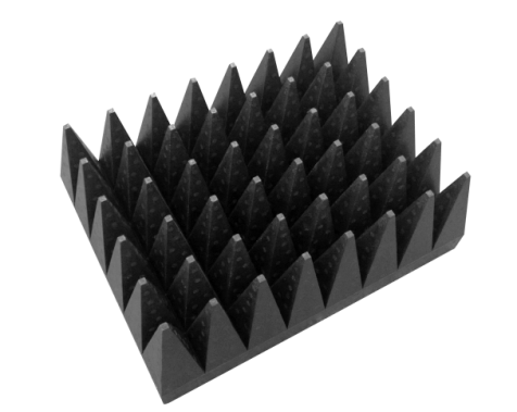 Pyramid wave absorbing materials can provide excellent electromagnetic absorption performance in the operating frequency range of 0.5GHz-40GHz. Generally speaking, pyramid absorbers are suitable for the main reflection areas of the back wall, side walls, floor and ceiling of the darkroom. Different types of pyramid wave absorbing materials have different sizes and absorption properties, which can meet the different needs of customers